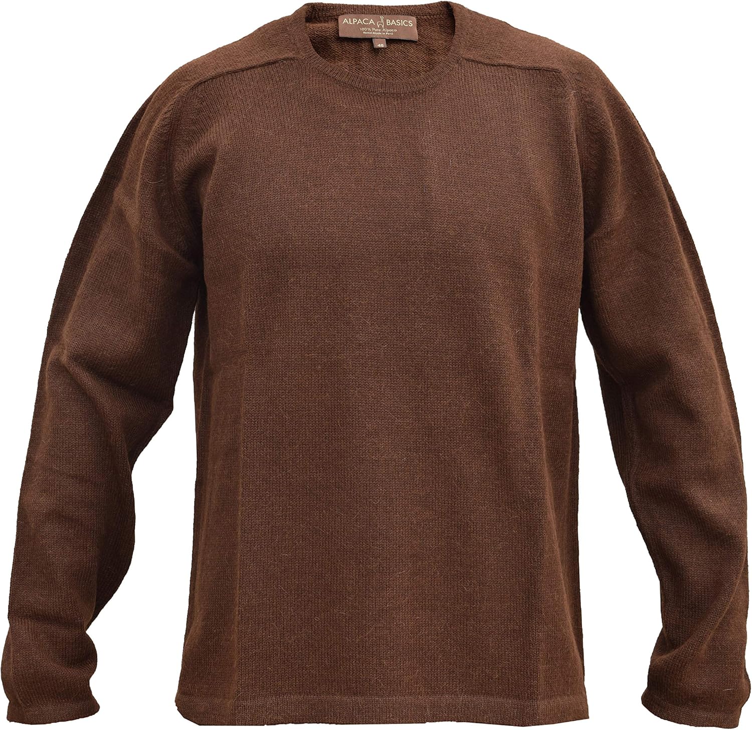 Men's Handmade 100% Alpaca Wool Relaxed Crew Sweater (Brown, XL)