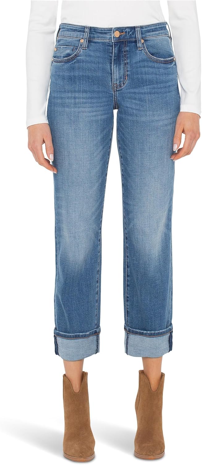 Liverpool Womens Marley Mid-Rise Girlfriend Cuffed Jeans 30" Uncuffed/ 27" Cuffed Inseam