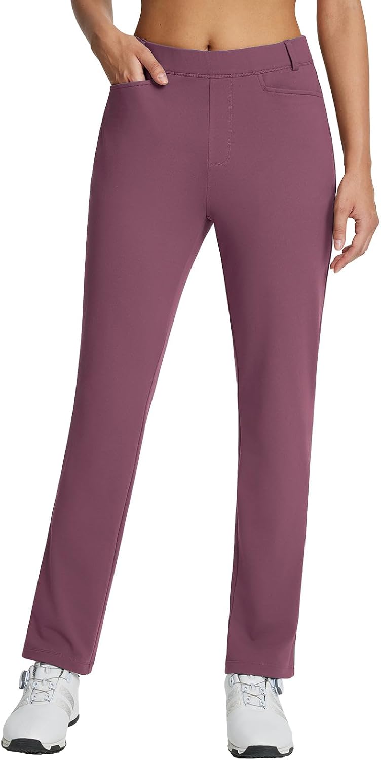 baleaf Women's Golf Pant Winter Fleece Lined Pants with Belt Loops Pockets Travel Work Casual