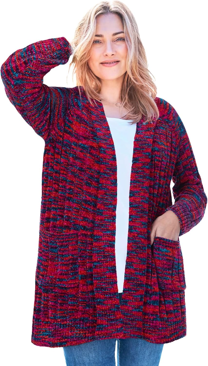 Woman Within Plus Size Open Front Chenille Cardigan Sweater
