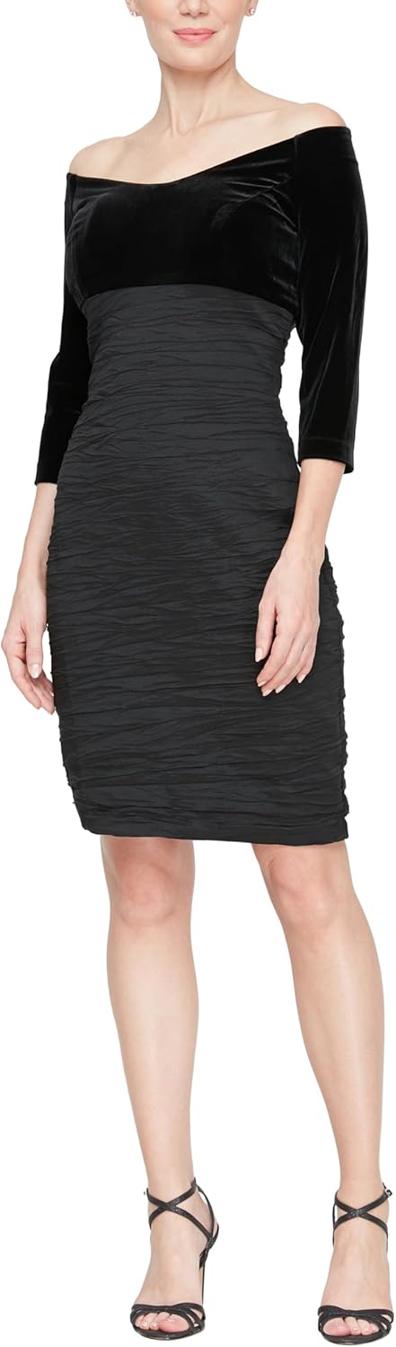 Alex Evenings Womens Short Off The Shoulder Velvet Dress (Petite and Regular)