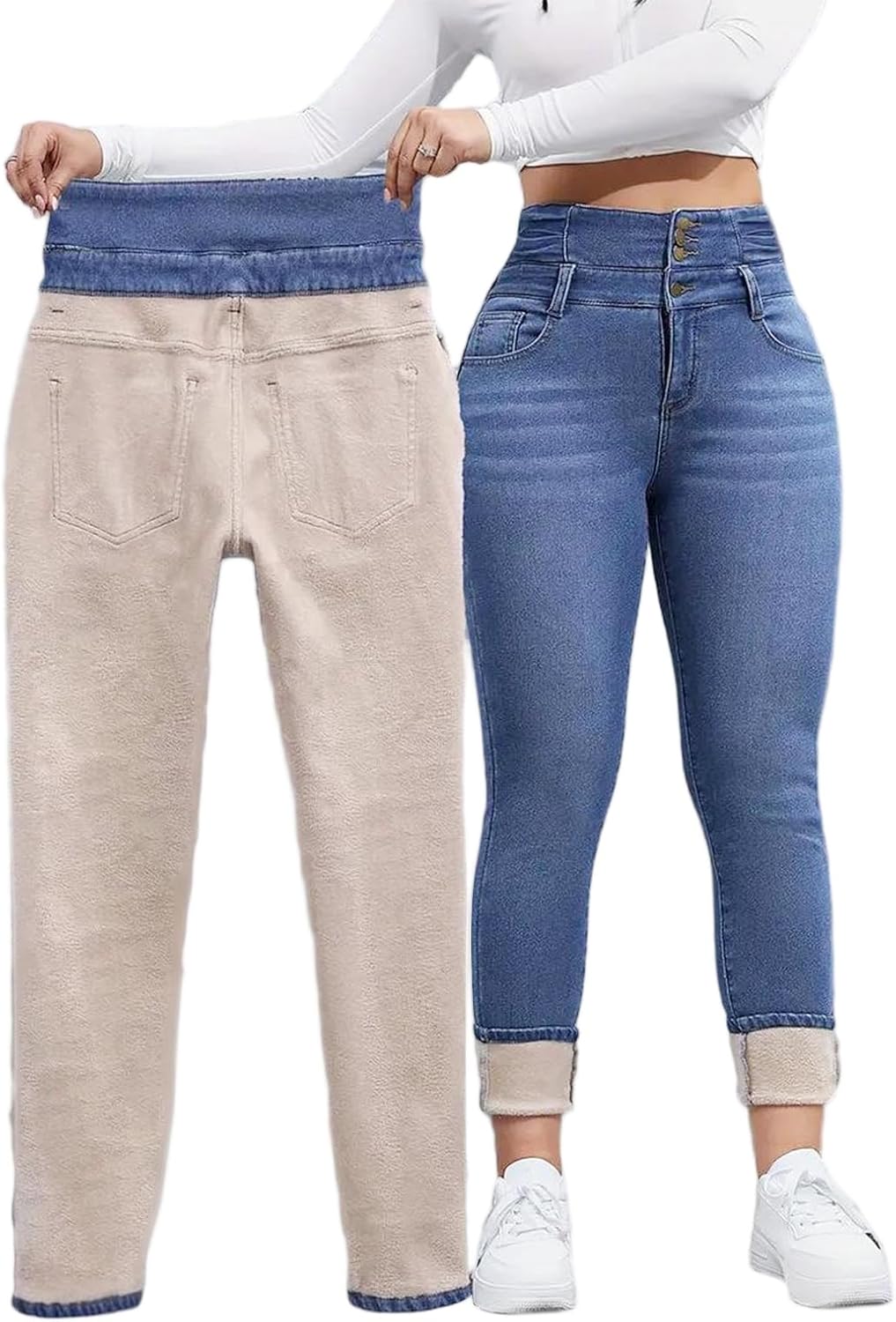Women's Fleece Lined Jeans Winter Thermal High Waisted Skinny Stretch Denim Pants - Thick Warm Lined Jeggings