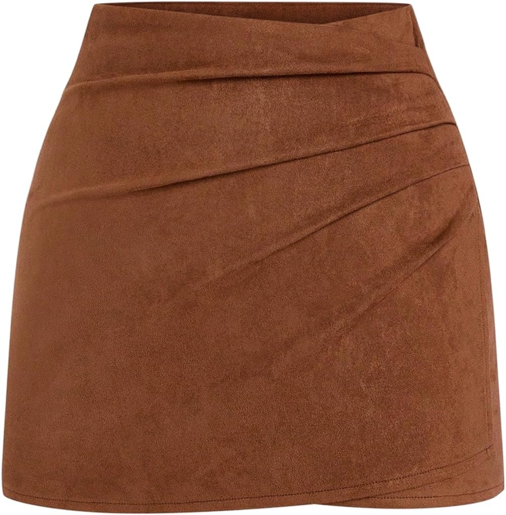 Floerns Women's Plus Size Suede Skirt Fall Winter Ruched Wrap Front Mini Skirts