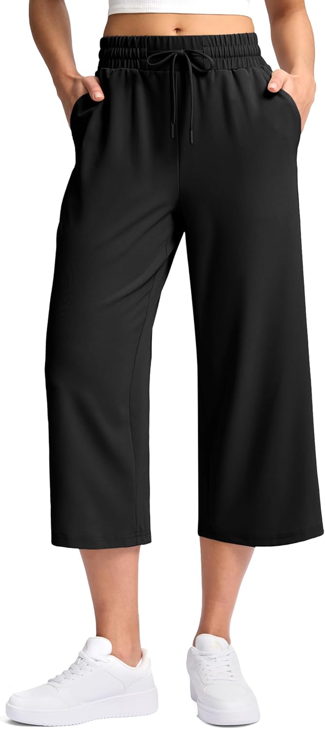 Soothfeel Women's Capri Pants Loose High Waisted Wide Leg Lightweight Travel Hiking Pants for Women Casual Summer with Pocket