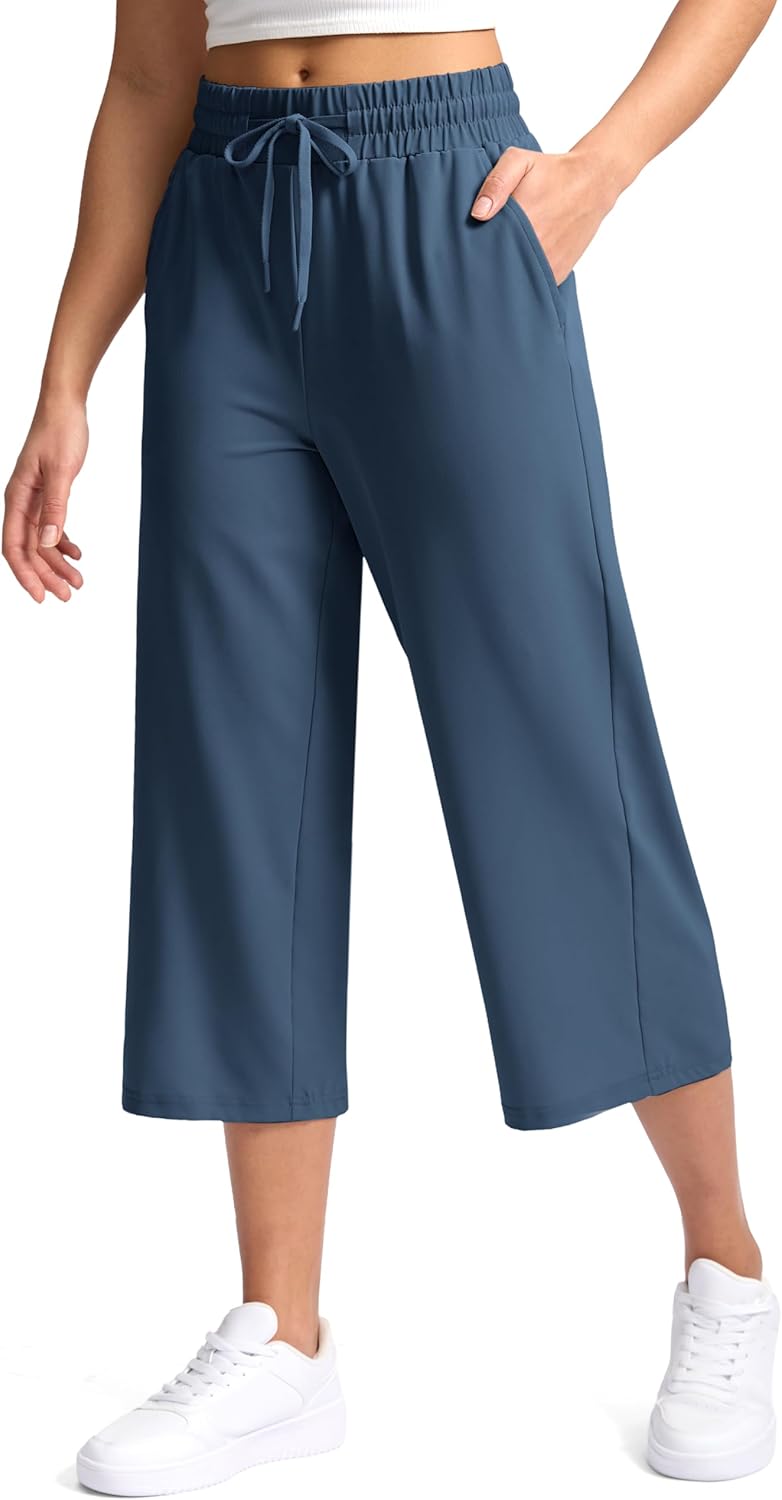 Soothfeel Women's Capri Pants Loose High Waisted Wide Leg Lightweight Travel Hiking Pants for Women Casual Summer with Pocket