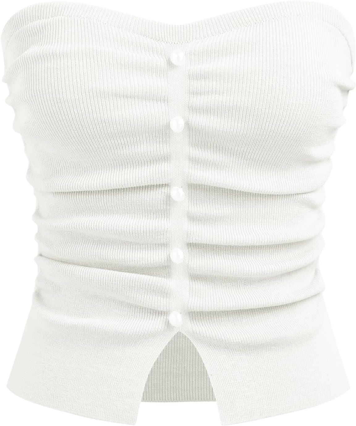 CIDER Faux Pearl Tube Tops for Women Crop Knit Split Hem Ruched Going Out Tops Cute Summer Outfits Y2K