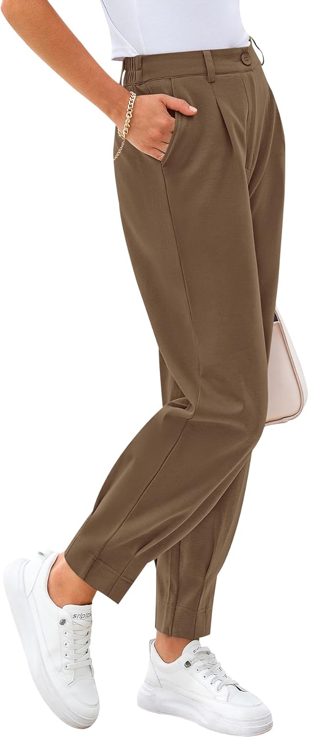 CFLONGE Women's Summer High Waisted Pants for Women 2026 Casual Ankle Length Pant for Work Office Trouser Slacks with Pockets