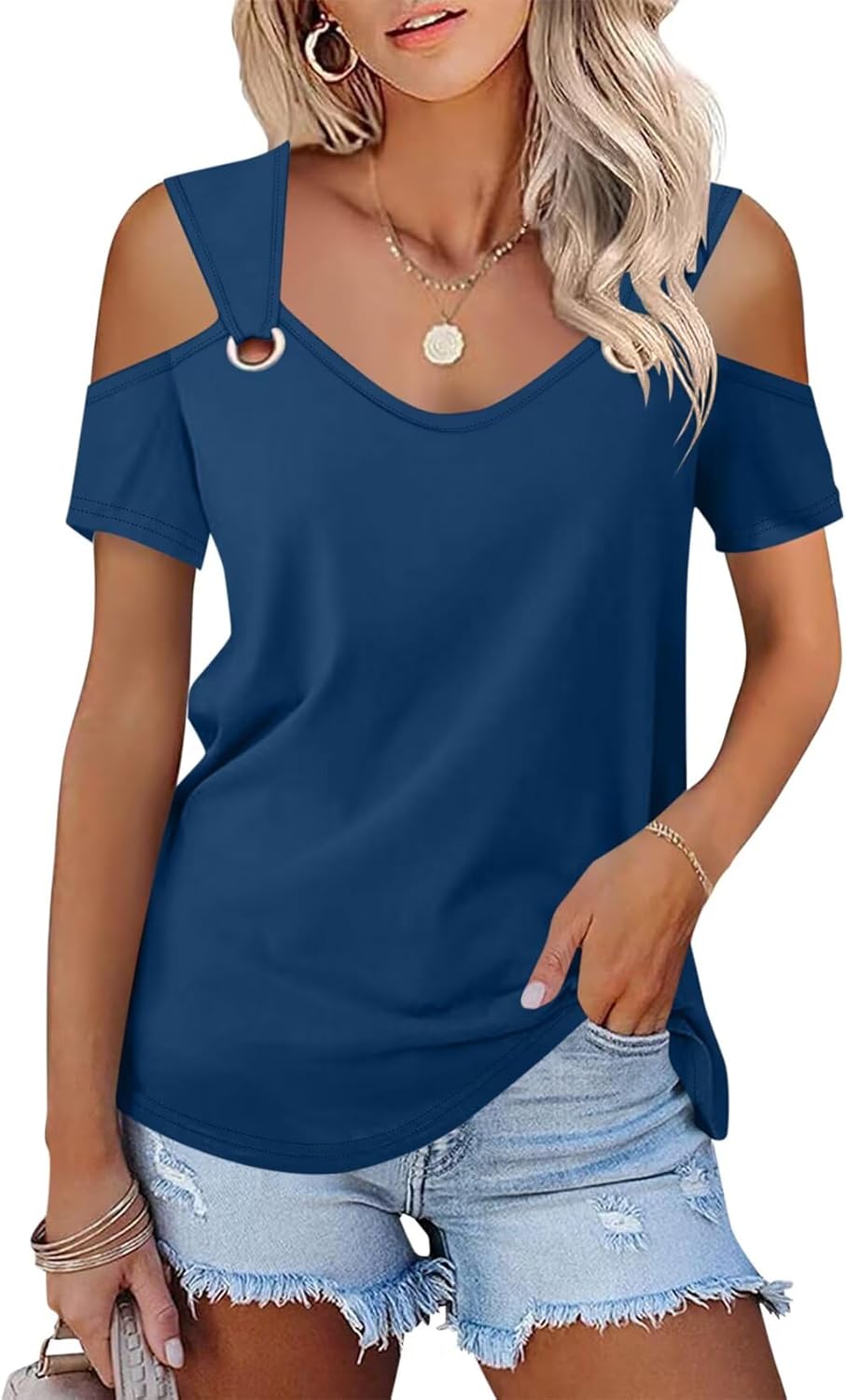 Minetom Women's Cold Shoulder Tops Short Sleeve V Neck T Shirts Basic Summer Tees
