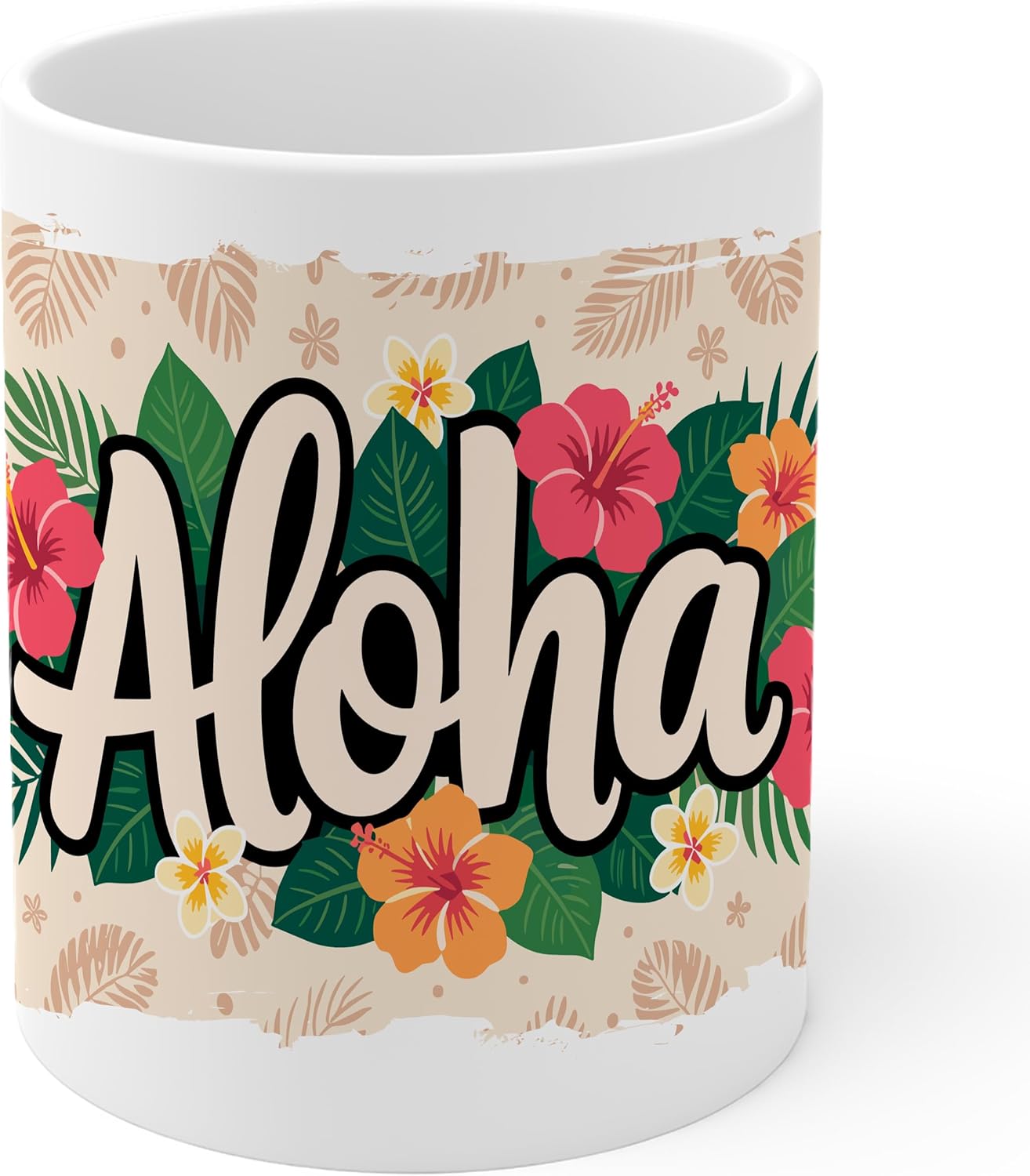 Aloha Ceramic Coffee Mug 11oz Hawaiian Tropical Island Vibes - Tea Coffee Mug with Comfortable Grip - Unique Fun Gift White Cup for Office or Home - Vibrant Long-Lasting Print ID44991