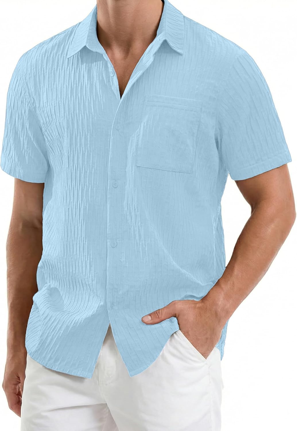 MAGNIVIT Men's Button Down Short Sleeve Shirts Casual Textured Summer Beach Shirt with Pocket