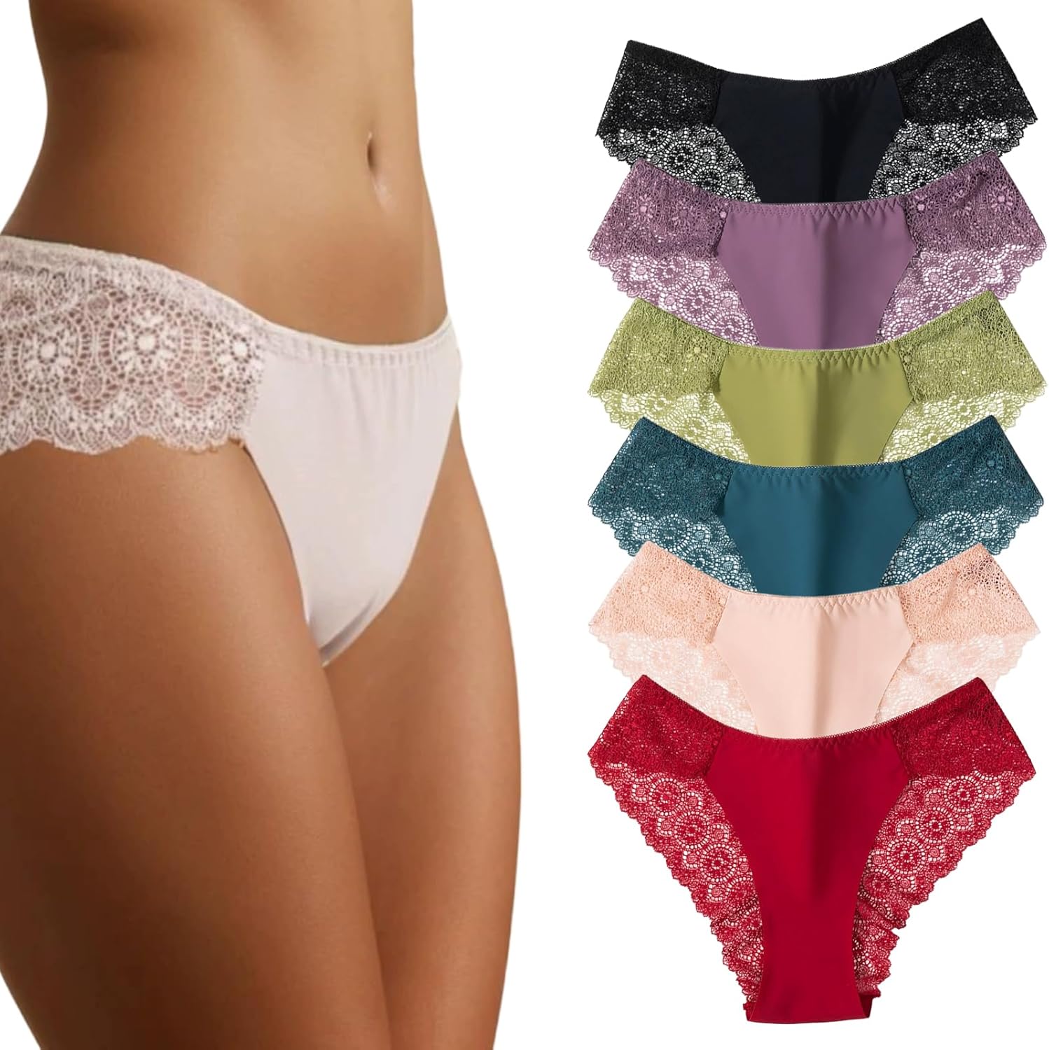 Sexy Soft Stretch Womens Underwear for Women Cheeky Bikini Lace Hipster Brief Panties for Ladies 6 Pack