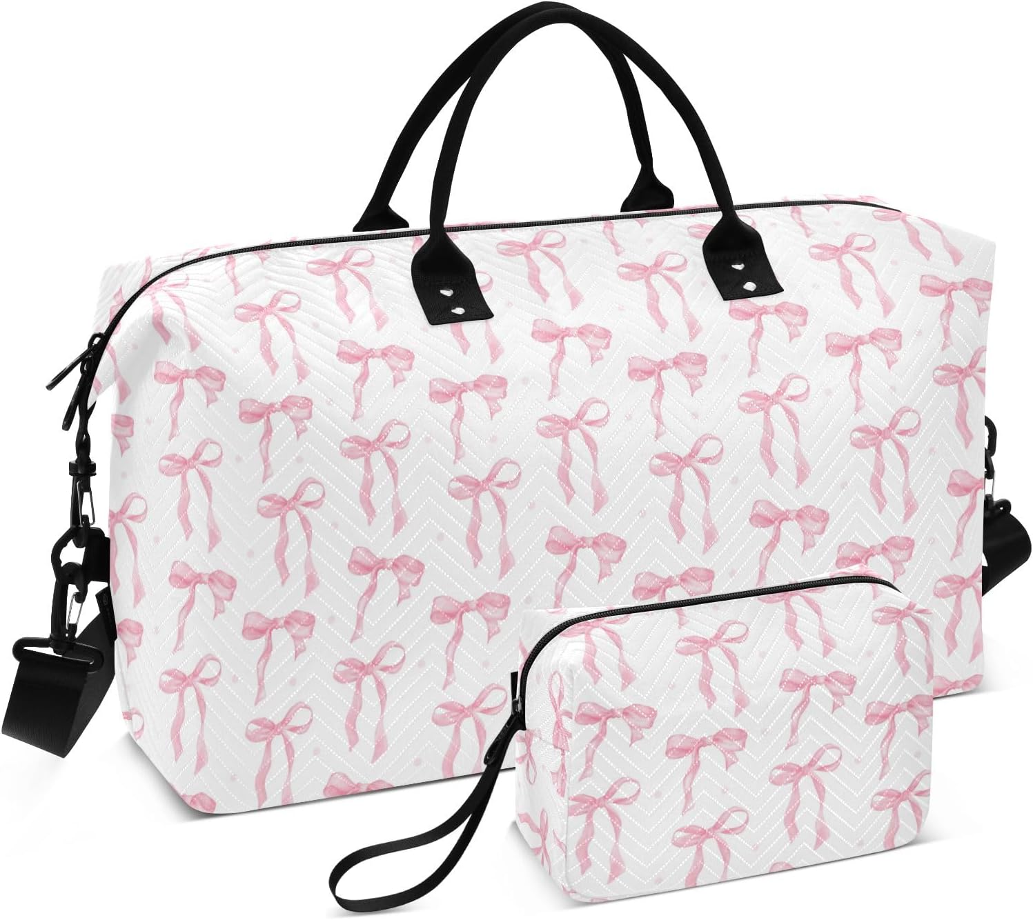 Weekender Bags Travel Duffel Gym Bag Carry on Overnight Tote Bag with Toiletry Bag for Airplane Travel Trip Gym Yoga (Pink Bow 61)