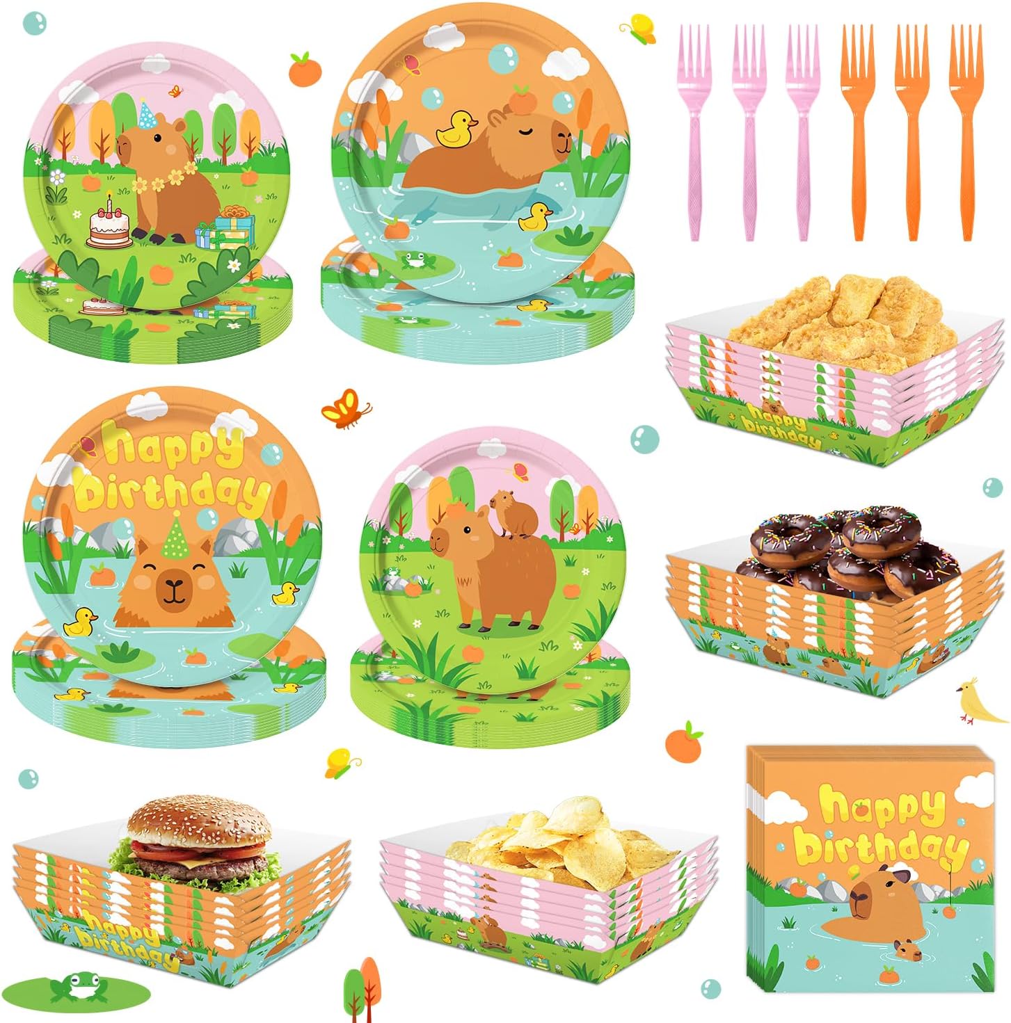 100PCS Capybara Birthday Party Decorations, Capybara Party Supplies Plates and Napkins Set, Capybara Theme Paper Food Trays 5 lb Large Food Serving Boats Disposable Snack Nacho Trays Baby Shower