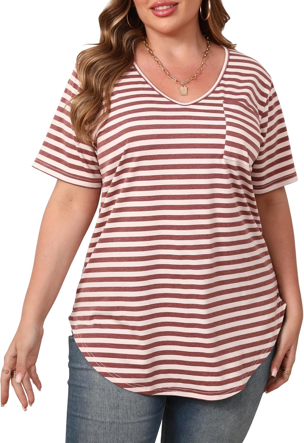 Womens Casual Scoop Collar Plus Size T Shirts Short Sleeve Loose Summer Tops Tee