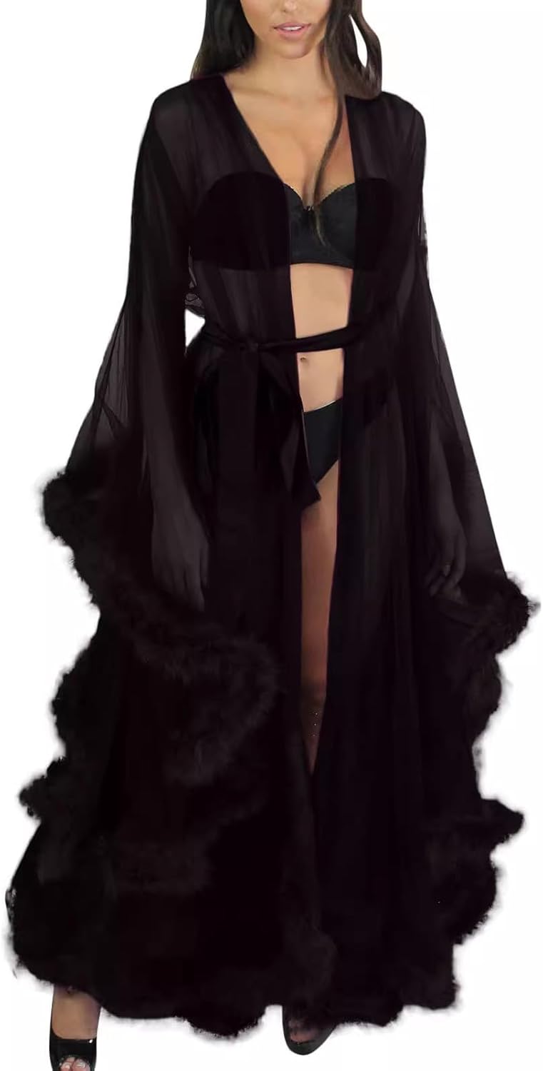 Long Fur Tulle Robe for Women, Maternity Lingerie, Sexy Robe for Maternity Photoshoot