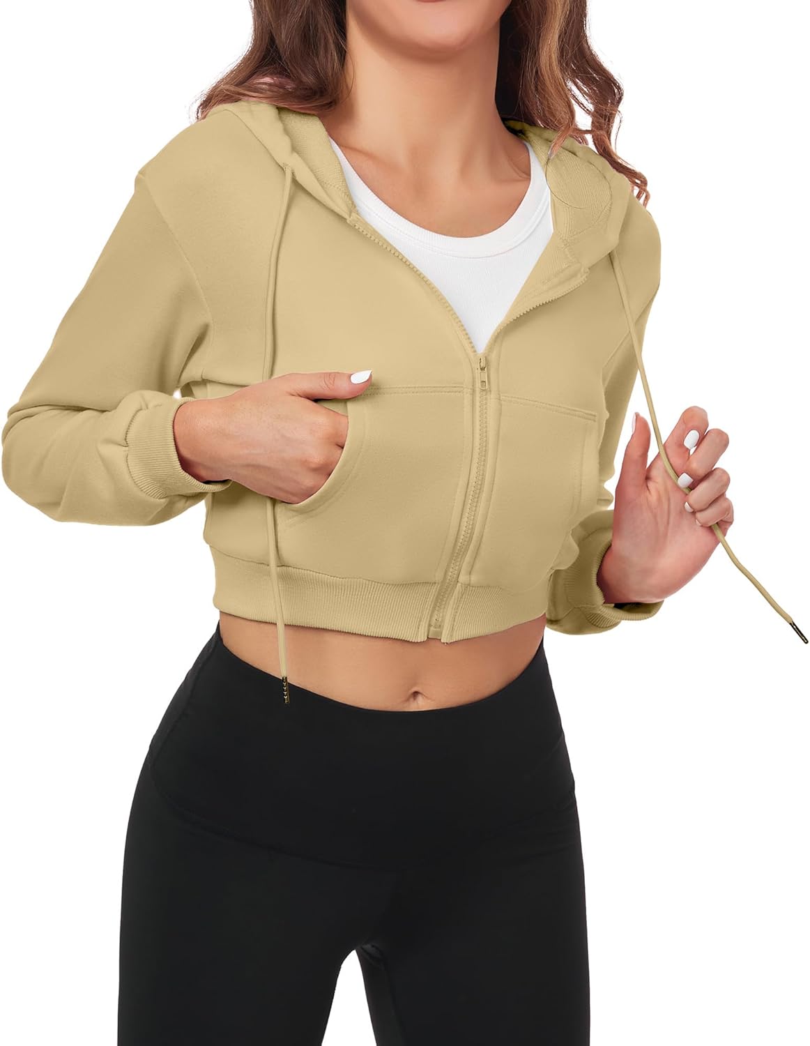Airfree Womens Zip Up Hoodies Cropped Sweatshirt Workout Long Sleeve Jackets Hooded Y2K Casual Coat for Women