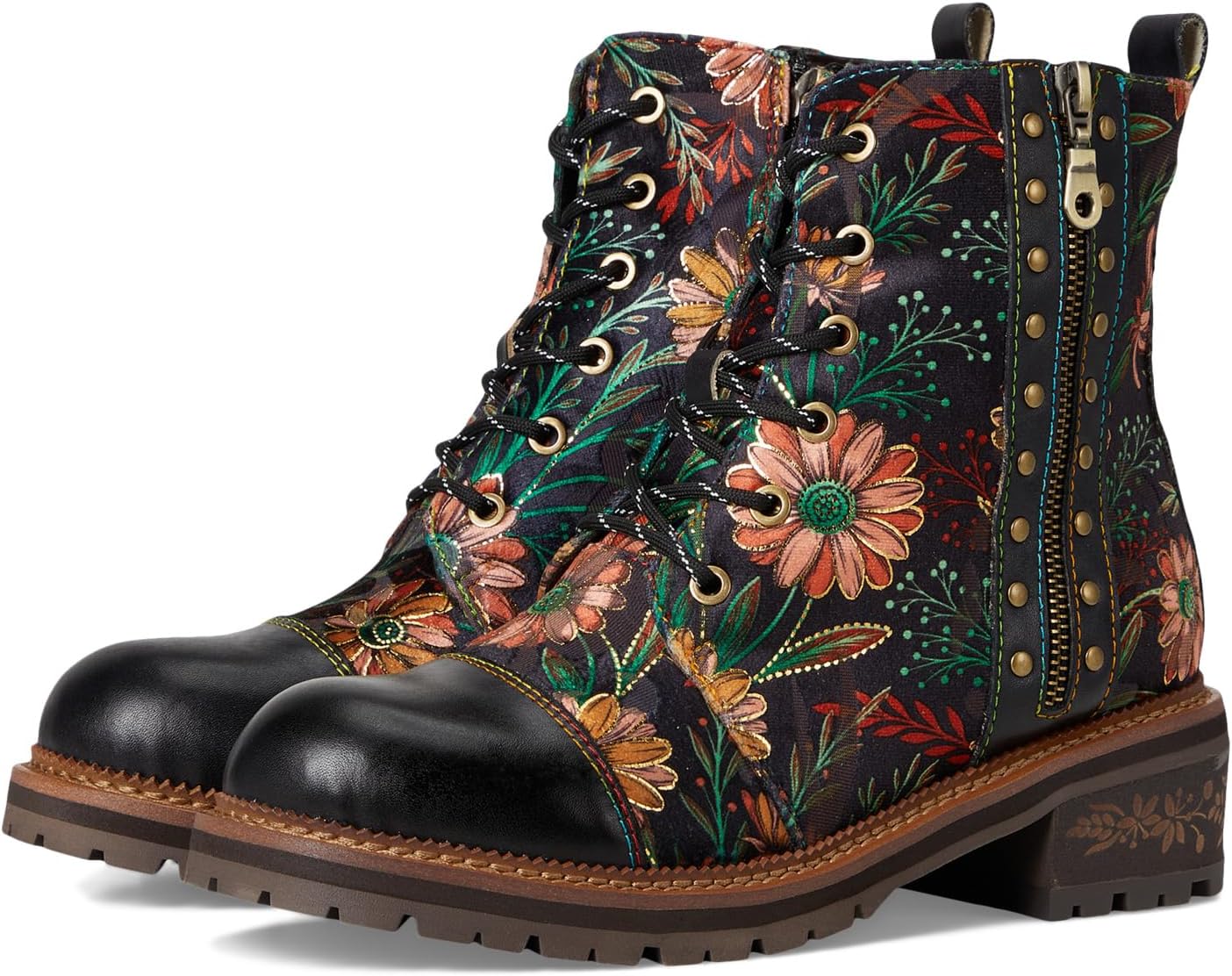 Spring Step L'Artiste Cordea Booties | Embroidered Leather Ankle Boots with Studded Details