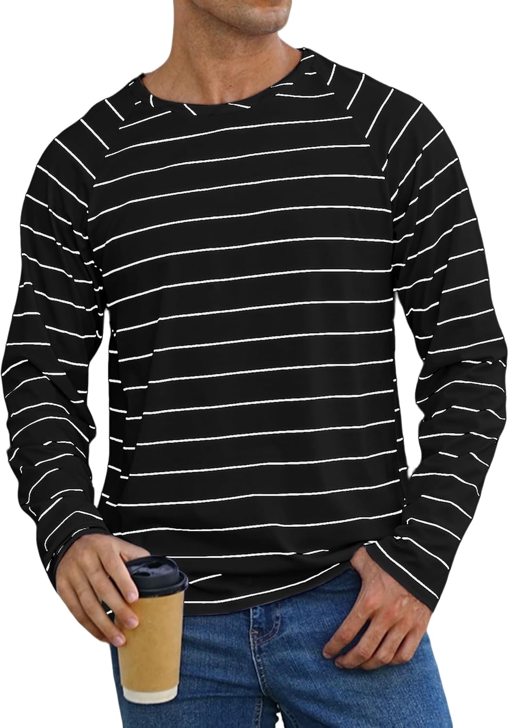 PRETTODAY Men's Striped T Shirts Raglan Long Sleeve Crew Neck Tee Casual Basic Blouse Tops