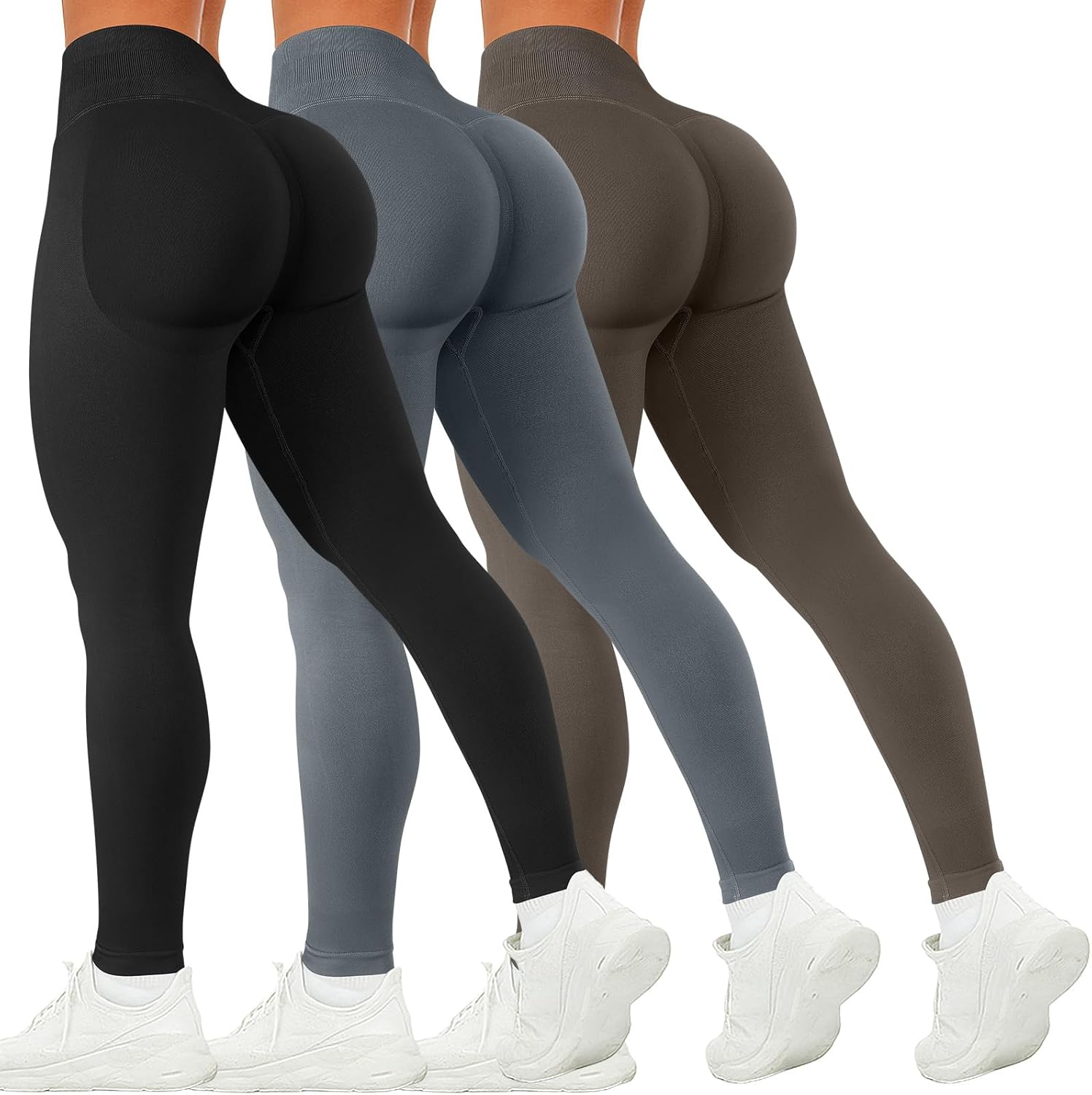 Coume 3 Pack Workout Leggings for Women Seamless Butt Lifting Leggings Compression Tummy Control Mid-Low Waist Yoga Pants
