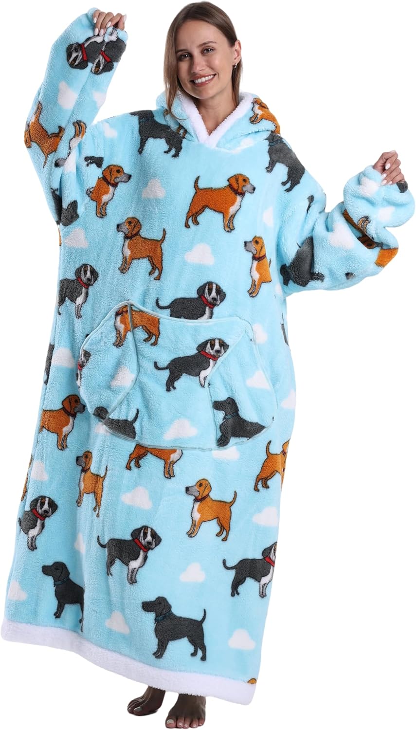 Blanket Hoodie, Long Hooded Blanket Sweatshirt as Birthday Gifts for Women Men, Long Wearable Blanket for Women Men.