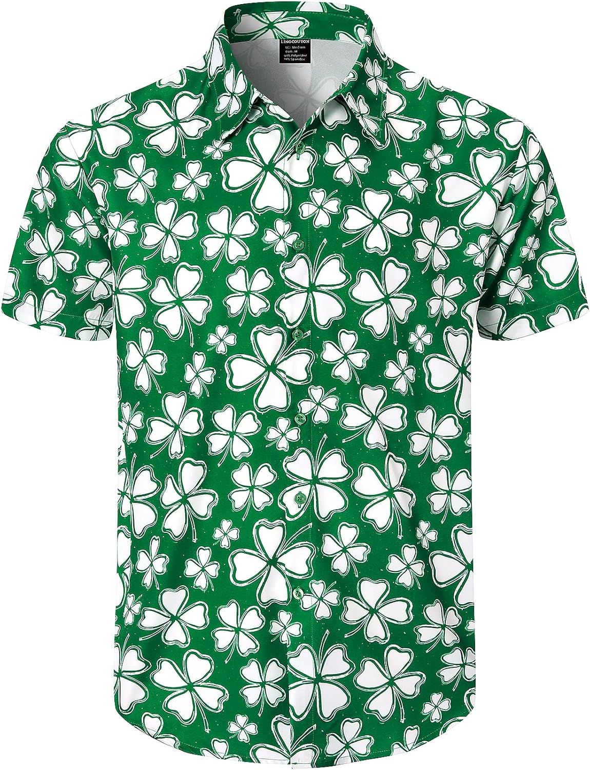 LINOCOUTON Men's St Patrick's Day Shamrock Printed Button Down Shirt