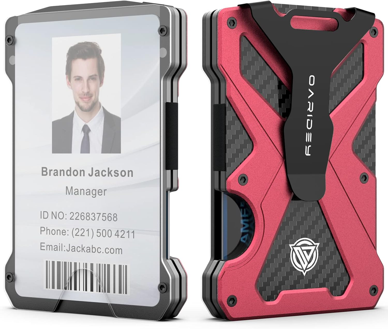 Oaridey Minimalist Wallet for Men- Slim Aluminum Metal Money Clip Wallet with Clear ID Card Holder, Carbon Fiber Wallet, RFID Blocking,Holds up 15 Cards with Cash Clip,Ultra-Thin Tactical Wallet- Red