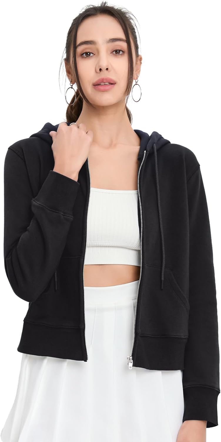 Women's Zip Up Fleece Hoodie Slightly Cropped Long Sleeve Comfortable Trendy Sweatshirt