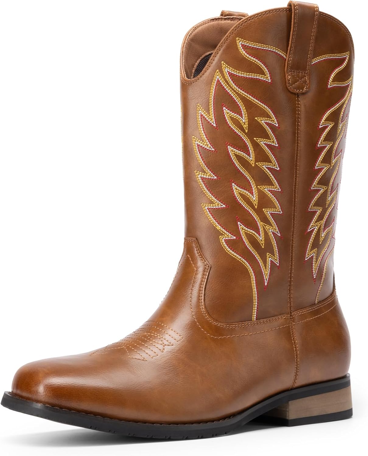 Bruno Marc Cowboy Boots for Men, Slip on Western Boots with Chic Embroidered Durable Short Retro Country Square Toe Boot