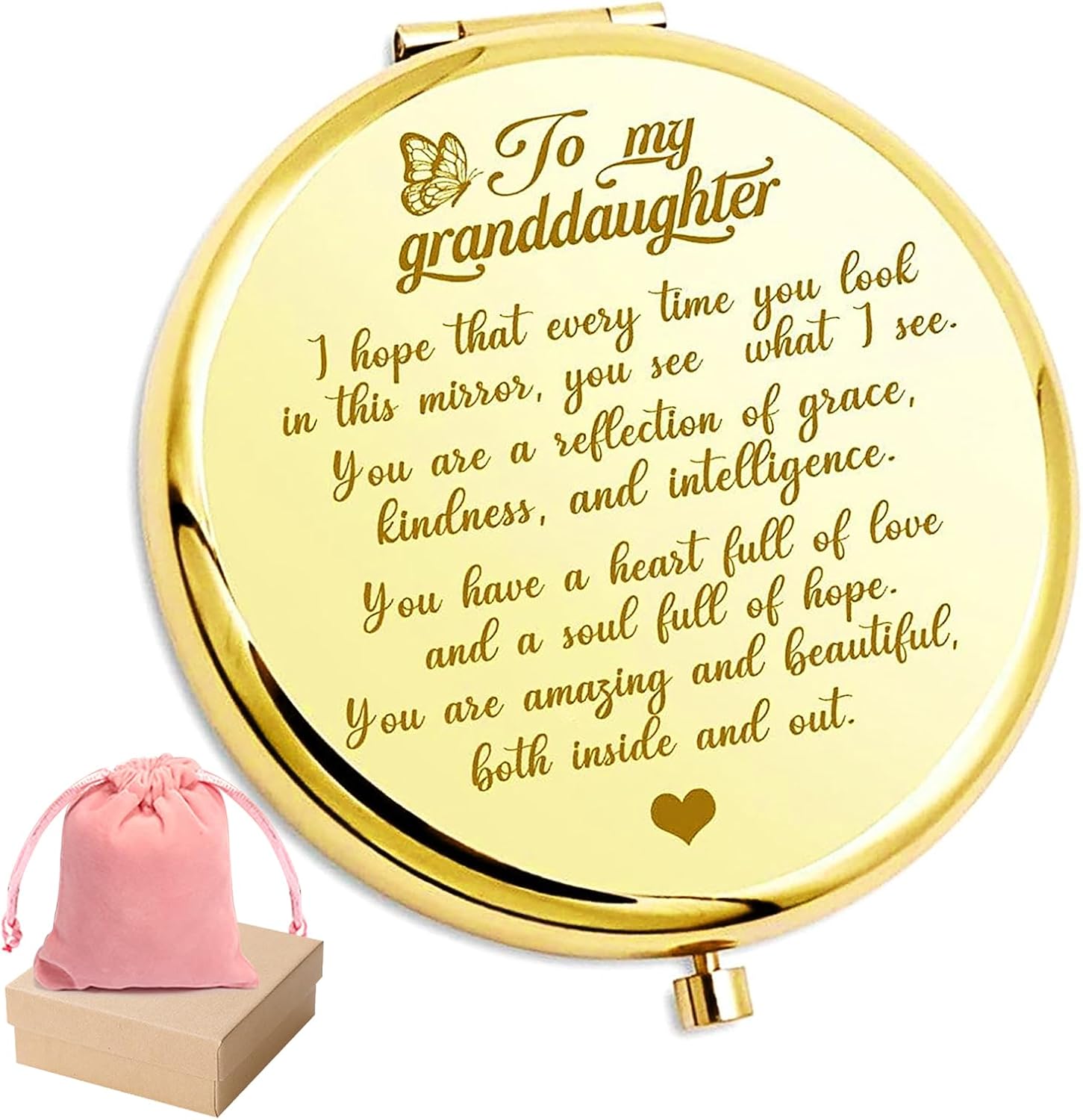 to My Granddaughter - You're Amazing and Beautiful - Pocket Mirror, Granddaughter Engraved Compact Mirror, Family First Mirror Encouragement Gifts from Grandparents (Gold-A)