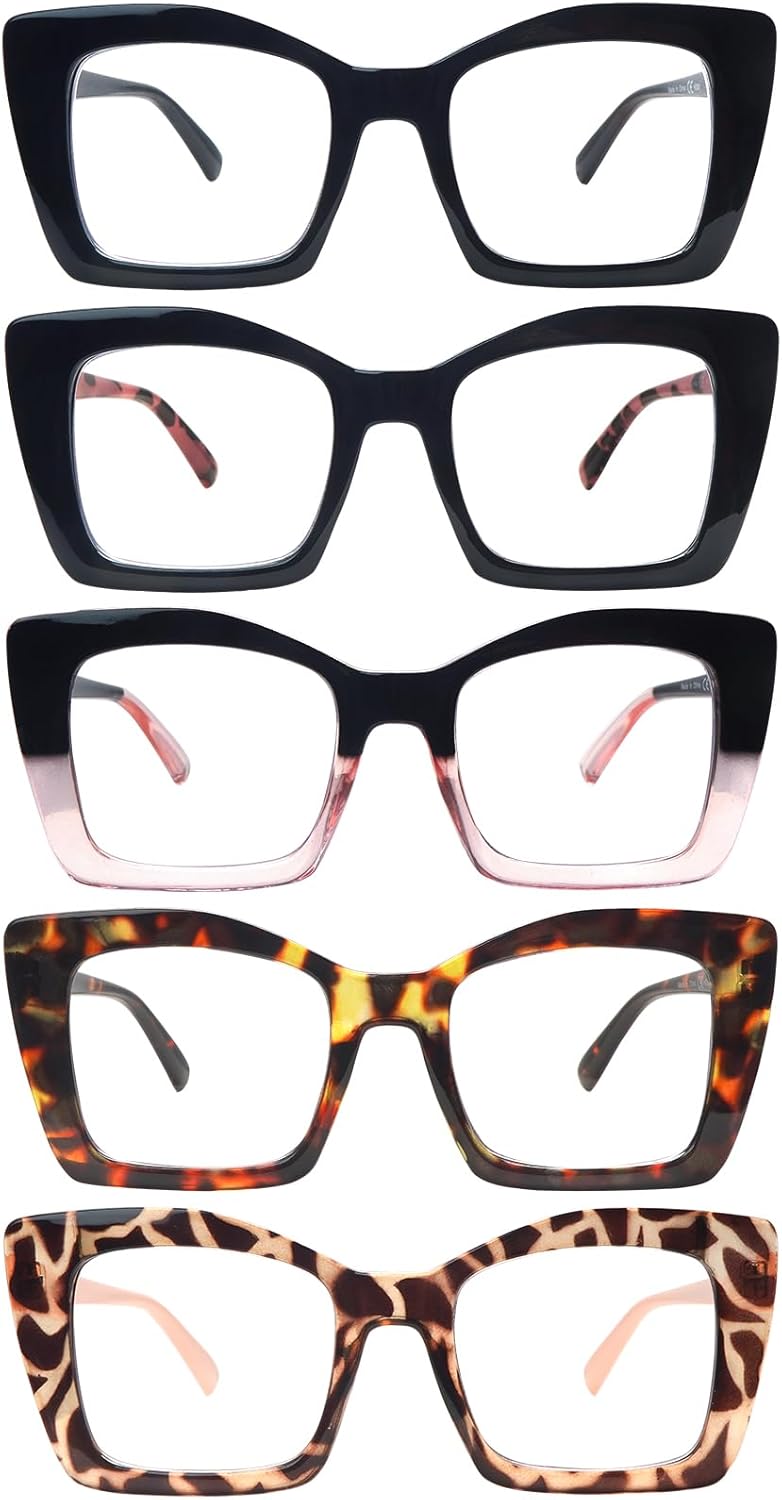Reading Glasses for Women 5 Pack Oprah Style Blue Light Blocking Oversized Square Computer Spring Hinge Readers