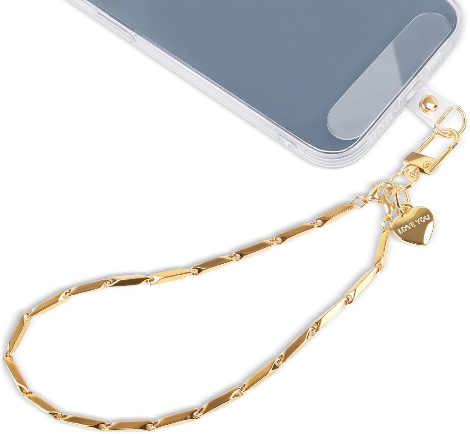AULEEP Phone Chain Wristlet Gold Phone Charm Wrist Strap,Universal Metal Phone Wristlet with Clear Tether Tab,Anti Theft Phone Strap for Shopping Traveling Party