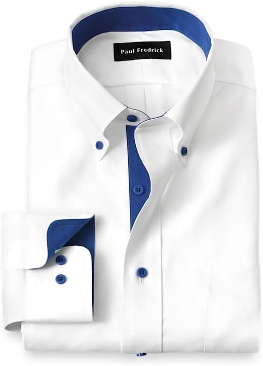 Paul Fredrick Men's Classic Fit Comfort Stretch Non-Iron Solid Dress Shirt