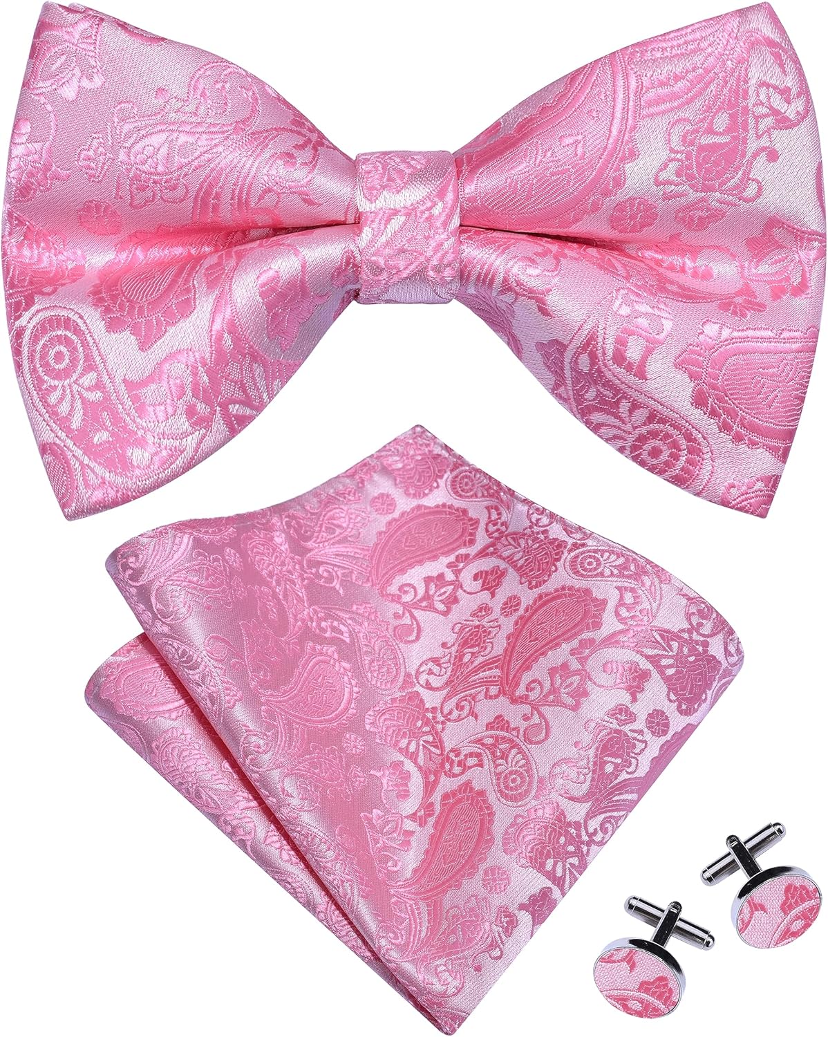 GUSLESON Mens Paisley Bow Tie Handkerchief Jacquard Woven Adjustable Pre-Tied Bowties Pocket Square Cufflinks Set
