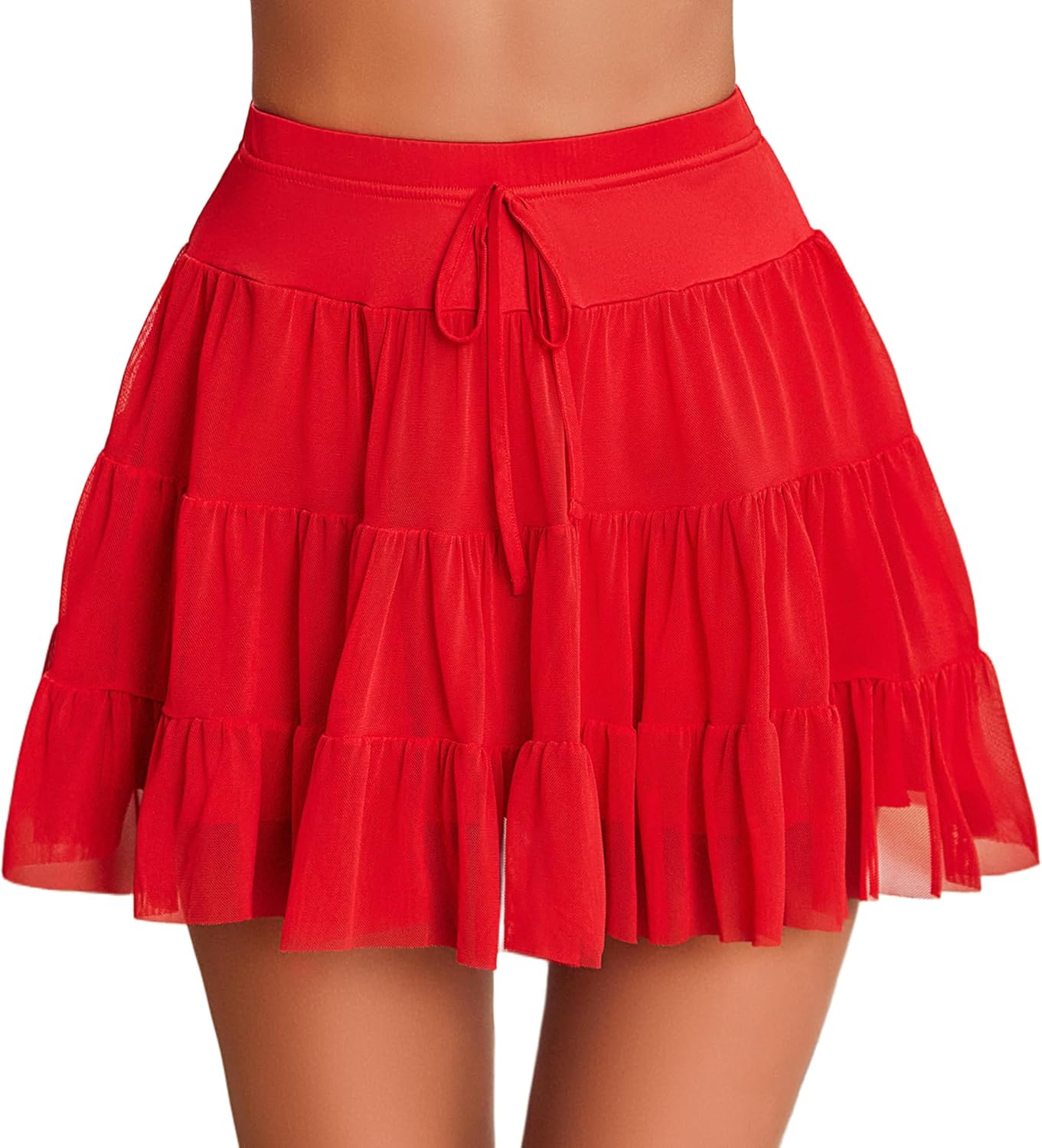 Avidlove Mini Skirt Women's Mesh Ruffle Y2K Skirts Multi-Layer Flowy Lingerie Skirt