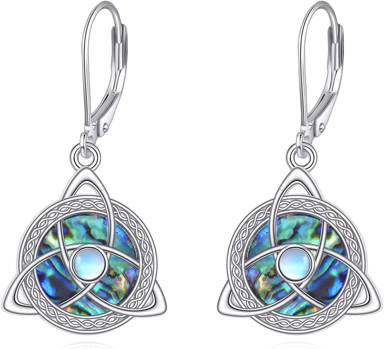 Celtic Knot Earrings 925 Sterling Silver Moonstone Celtic Knot Dangle Leverback Earrings Trinity Jewelry Gifts for Women Mother Friends
