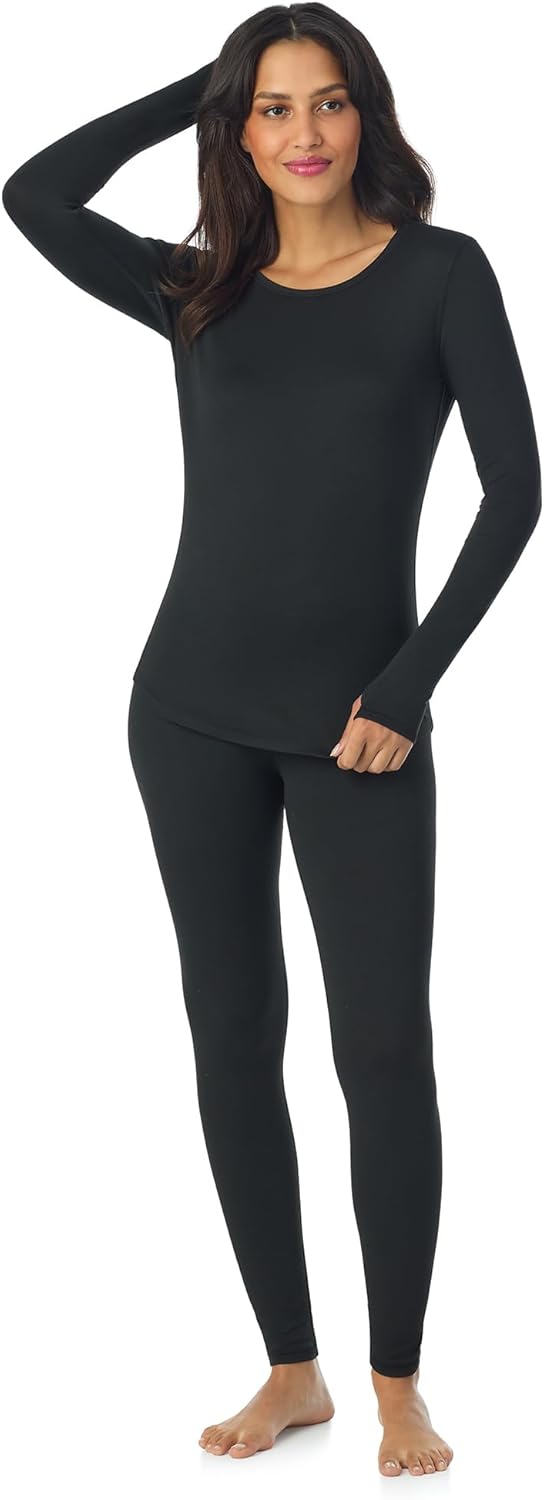 Cuddl Duds Womens Lightweight Breathable Everyday Active Base Layer Set - Long Sleeve Top & Leggings - Lounge Sets for Women