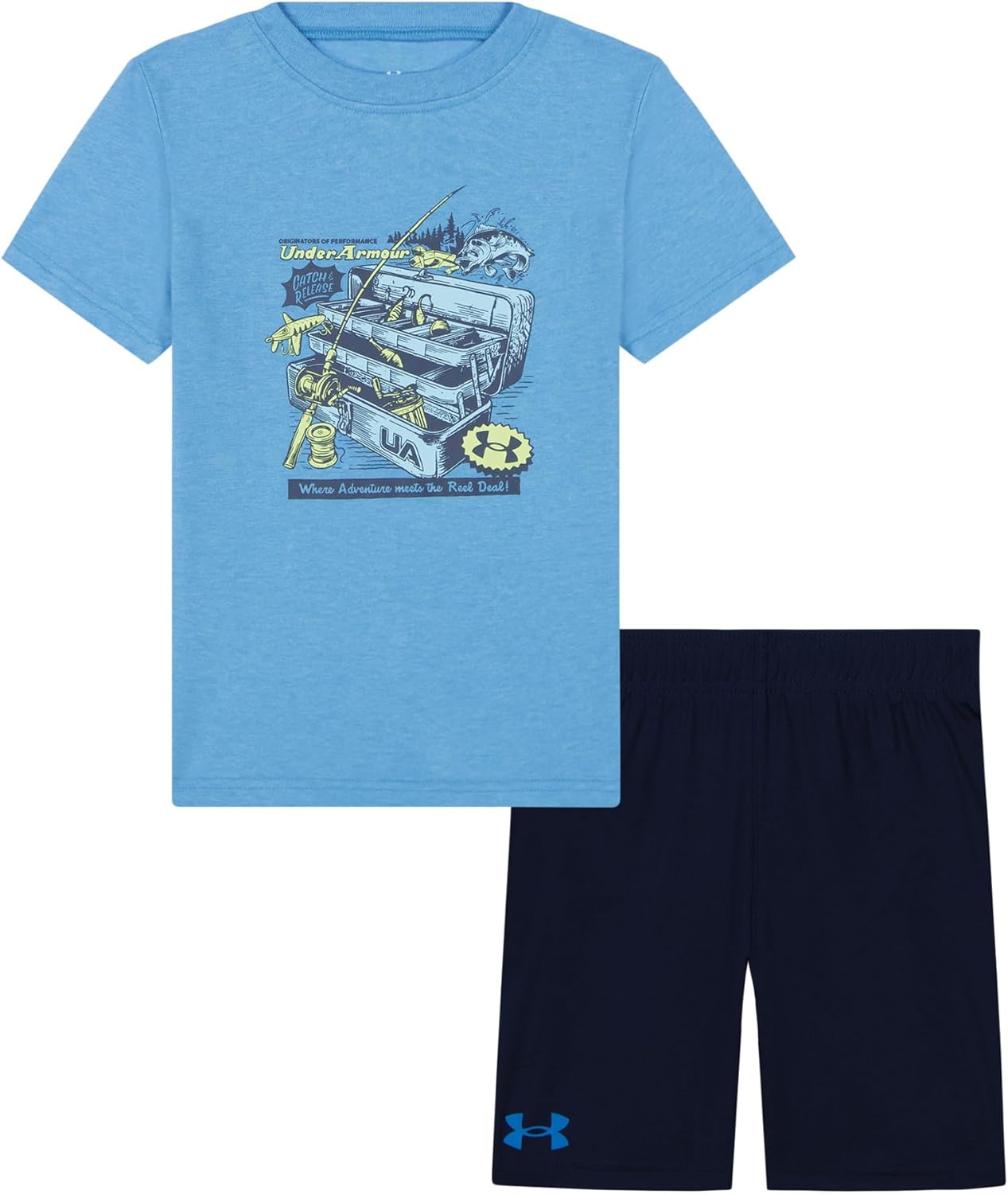 Under Armour Boys' 2-Piece Short Sleeve T-Shirt and Shorts Set, Outdoor Collection, Electric Blue Retro, 2T