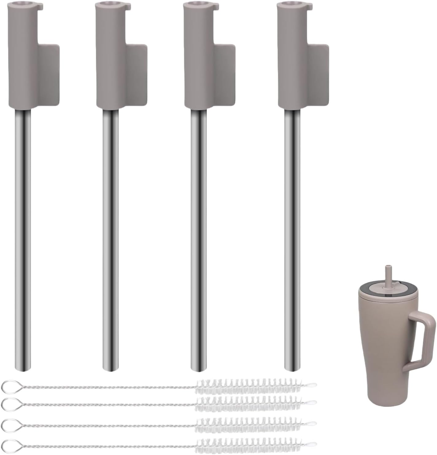 Replacement Straws Compatible With Brümate Era 40 oz Tumbler, Include 4pcs Tumbler Straw Cover Cap and 4pcs Reusable Straw with 4 Cleaning Brush(Brown)