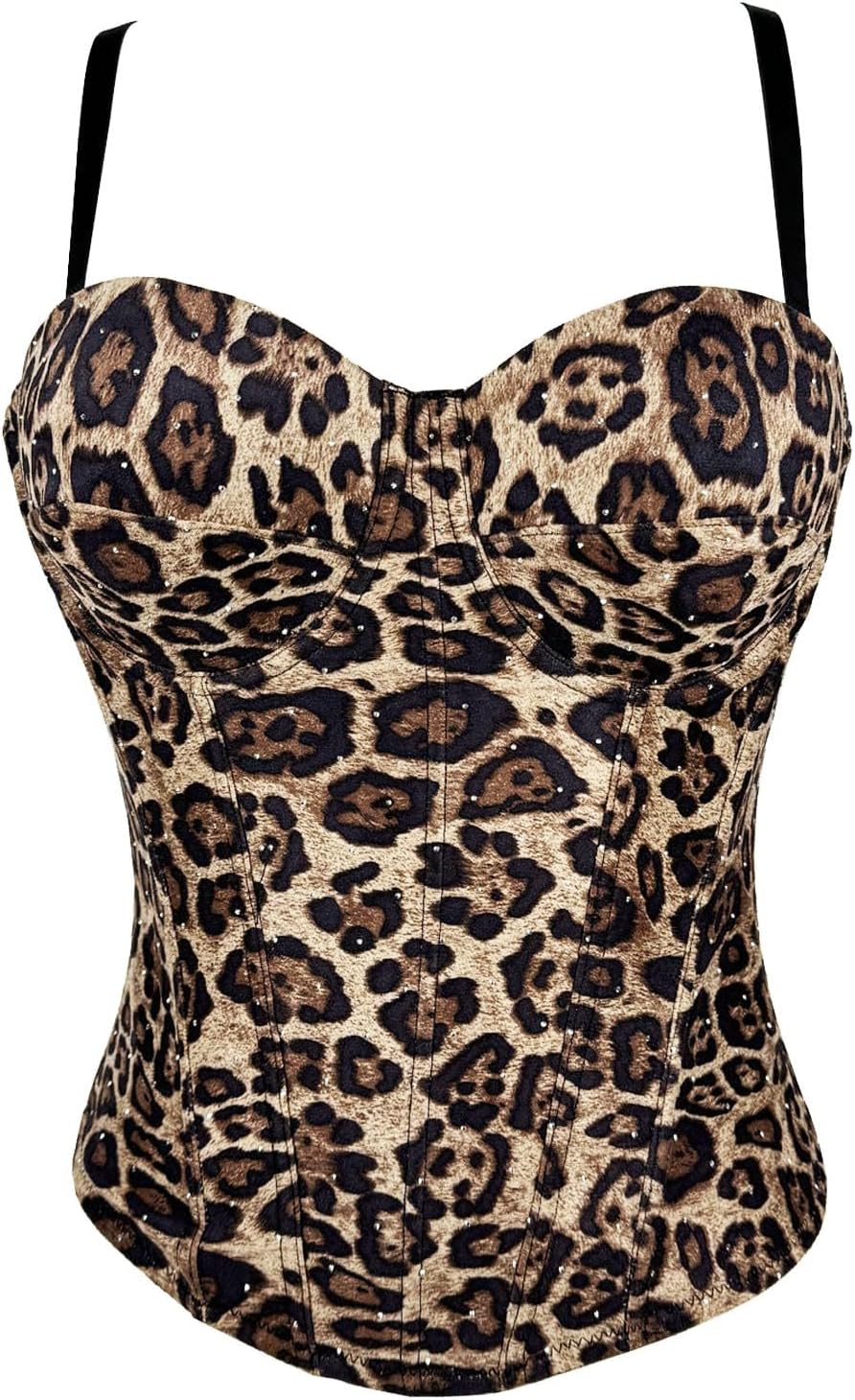 VEENDEO Women's Leopard Print Overbust Lace Corset Bustier Top Shapewear