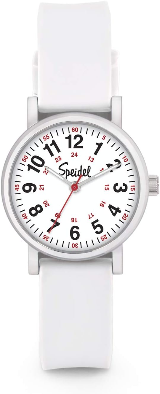 Speidel Scrub Petite Watch for Nurses, Medical Professionals, Mens and Womens Watch with Second Hand Nursing, Nurse Watches for Women Men, Waterproof 12 and 24 hr Time - White