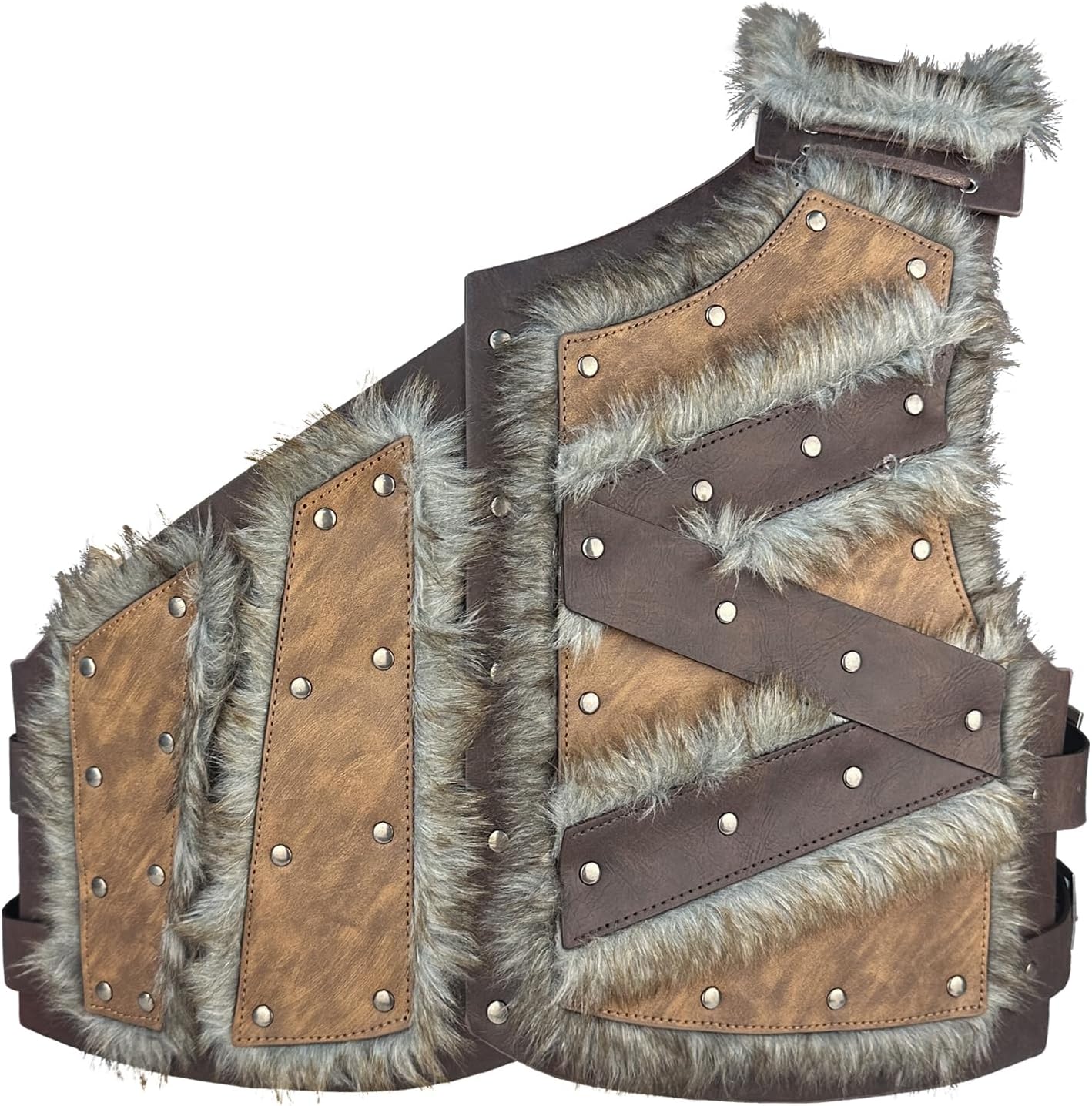 HiiFeuer Viking Artificial Fur Faux Leather Chest Armor, Medieval Vintage Barbarian Body Armor Knight Adjustable Vest Armour