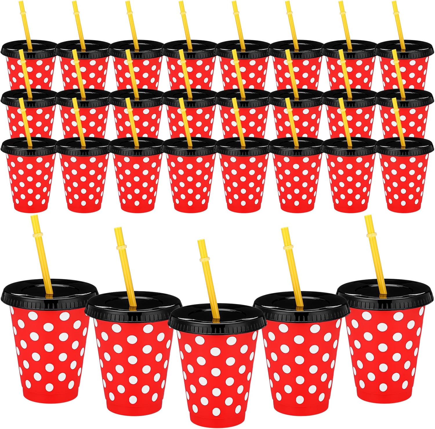 - Beautifully Packaged: contains complete lids and 24 reusable plastic cups; The cups are red with white dots; Cute and stylish design suitable as gifts for theme parties