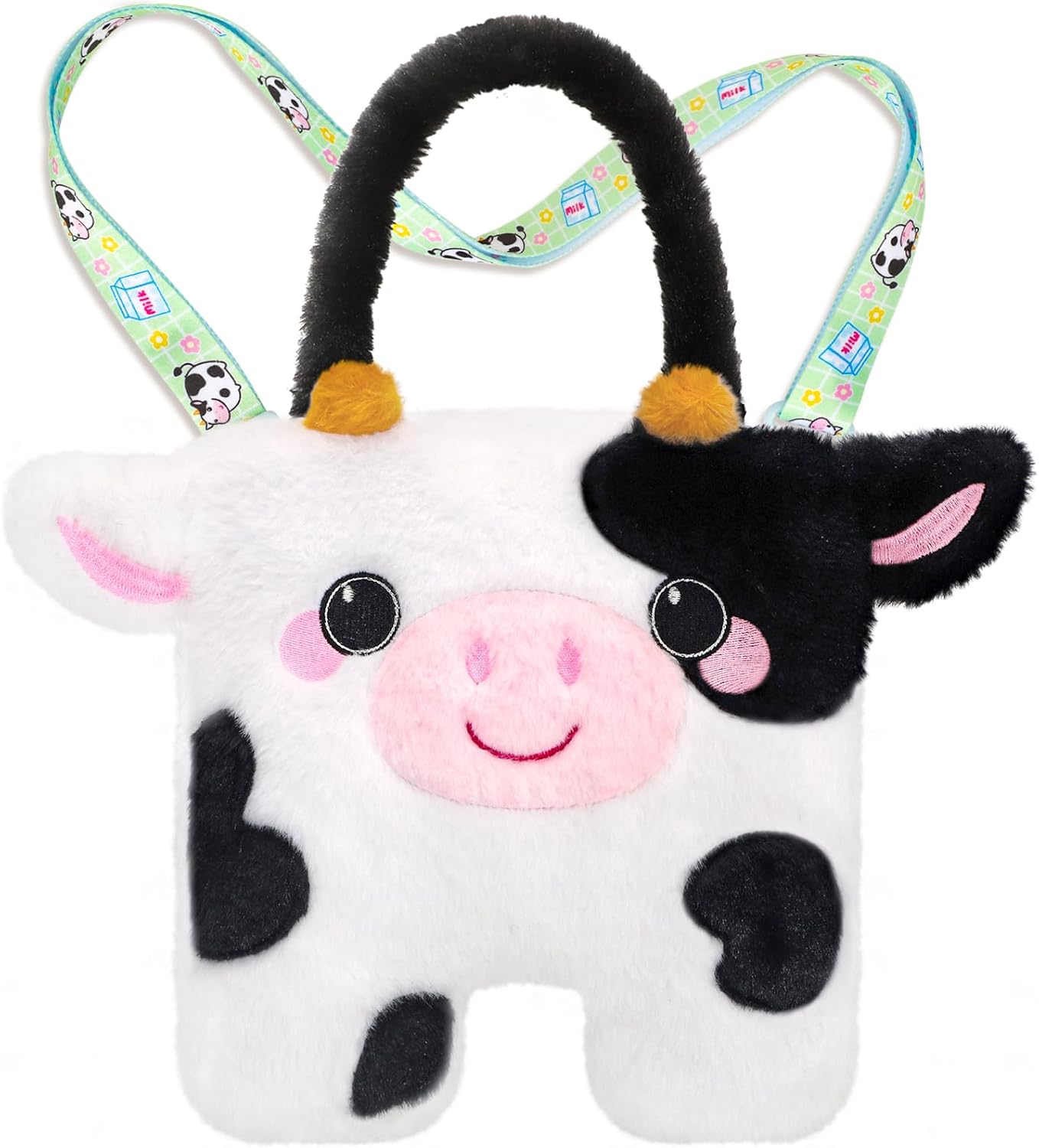Cow Plush Bag Crossbody Bag for Kids, Plush Handbag Tote Bag with Adjustable Strap,Soft Plush Cow Stuffed Purse with Zipper,Coin Pouch Accessories for Toddlers Kids