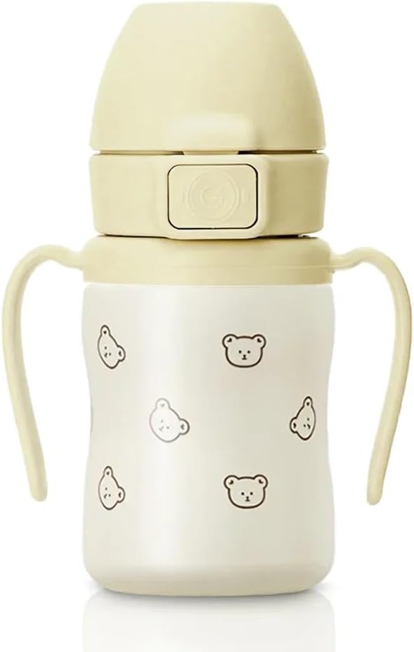 GROSMIMI Insulated 316 Stainless Steel Spill Proof Straw Cup, Water bottle with Flip Top for Toddlers, BPA Free (bear, 6oz)