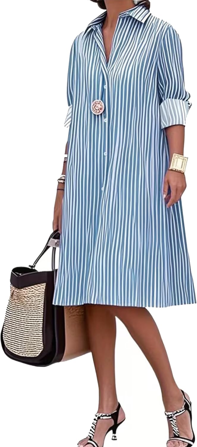 BDAILKA Women's Shirt Dress Casual Midi Dress Button Down V Neck Fit A-Line Shirt Dresses