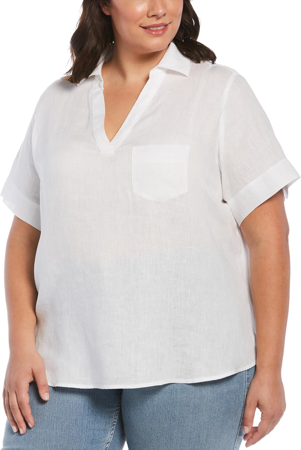 Rafaella Womens Split Neck Short Sleeve Linen Top