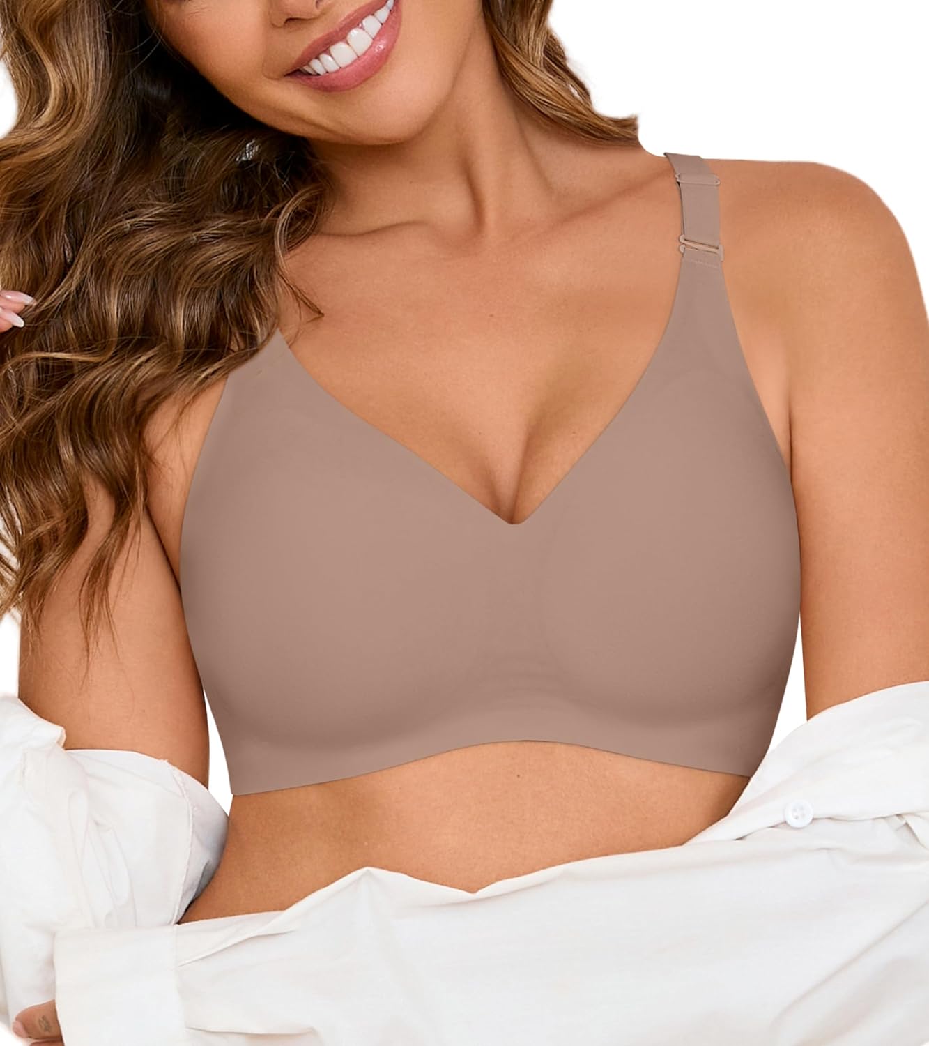 DEANGELMON Push Up Bras for Women No Underwire Comfortable Seamless Supportive Bralettes V Neck Full Coverage Bra Grey XX-Large
