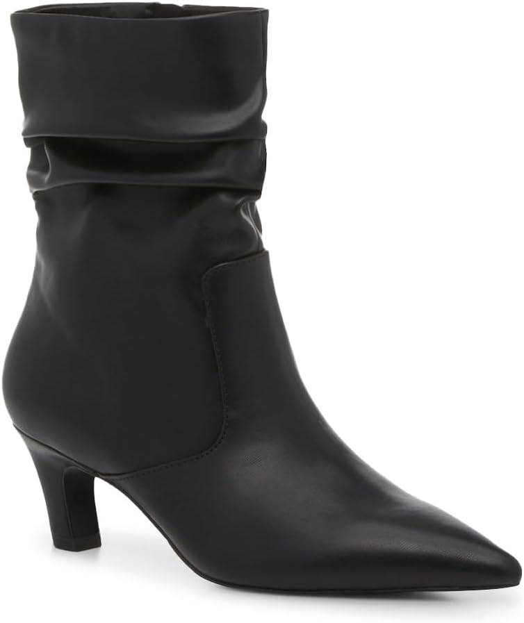CosyFever Slouch Ankle Boots for Women, Pointed Toe 2.6 Inch Mid Stiletto Heel Booties,Ruched Dress Booties for Date Night,Party & Evening Outfits