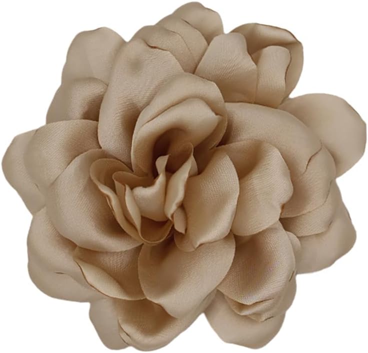 Dainty Satin Fabric Rose Flower Large Brooch Pin Handmade Big Camellia Brooch Lapel Pins Wedding Party Dance Banquet Dress Suit Ceremony Clothes Accessories Jewelry Gifts for Women (Khaki)