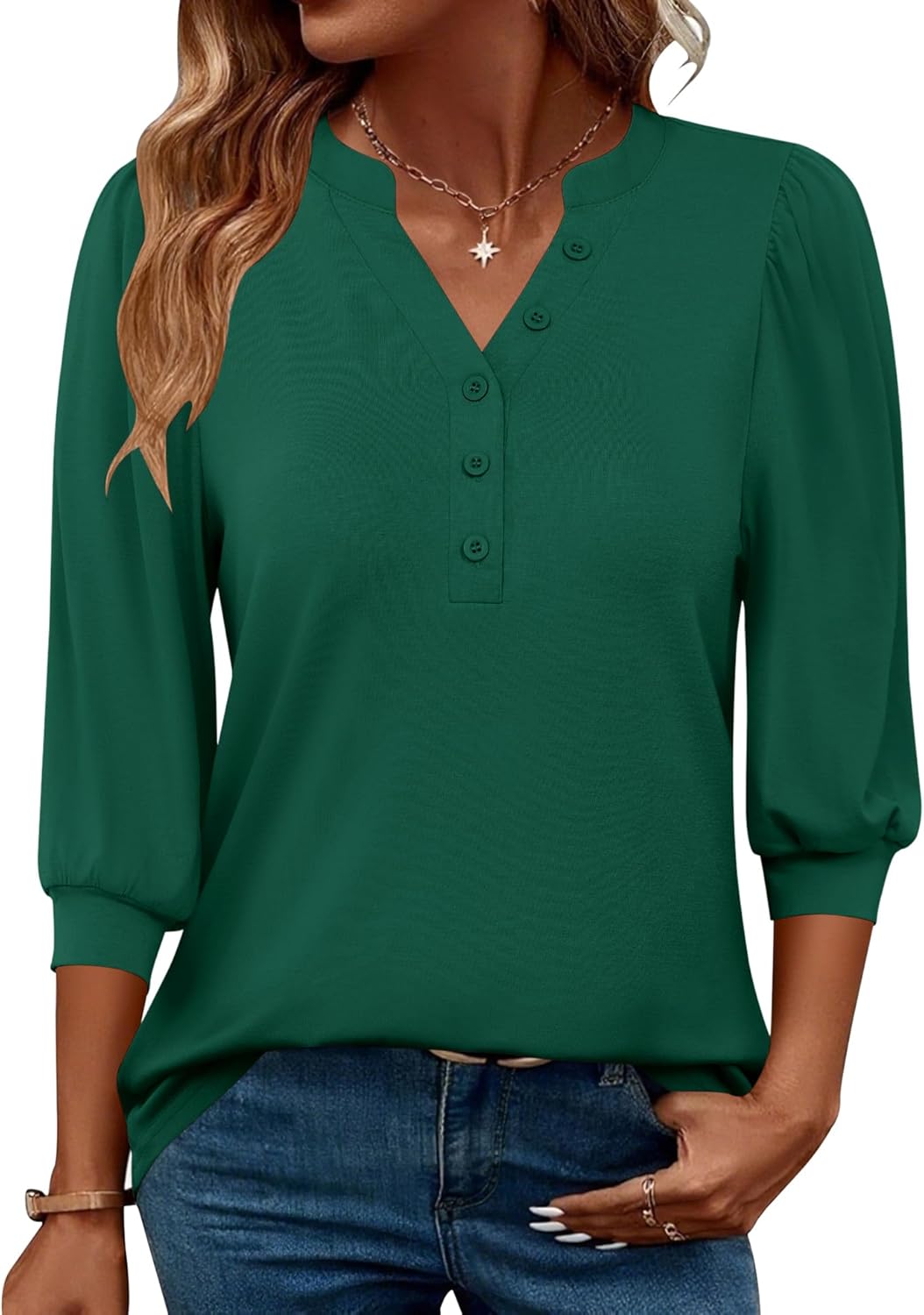 Rapbin 3/4 Length Sleeve Womens Tops 2025 Summer Fall Henley V Neck Button Down Tunic Shirts Casual Business Blouses